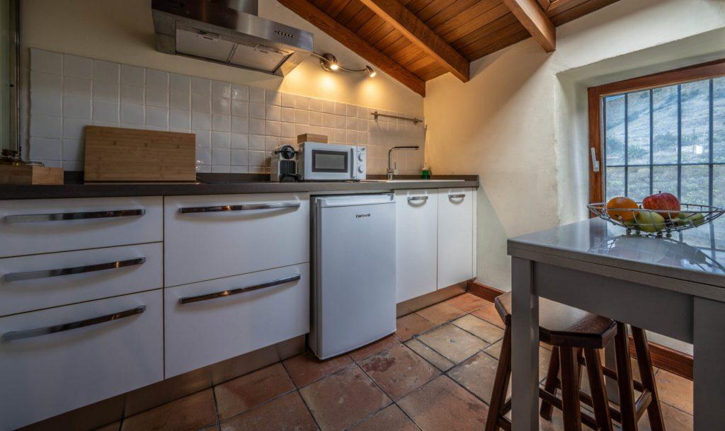 Cocina equipada (nevera + menaje básico + utensilios esenciales)