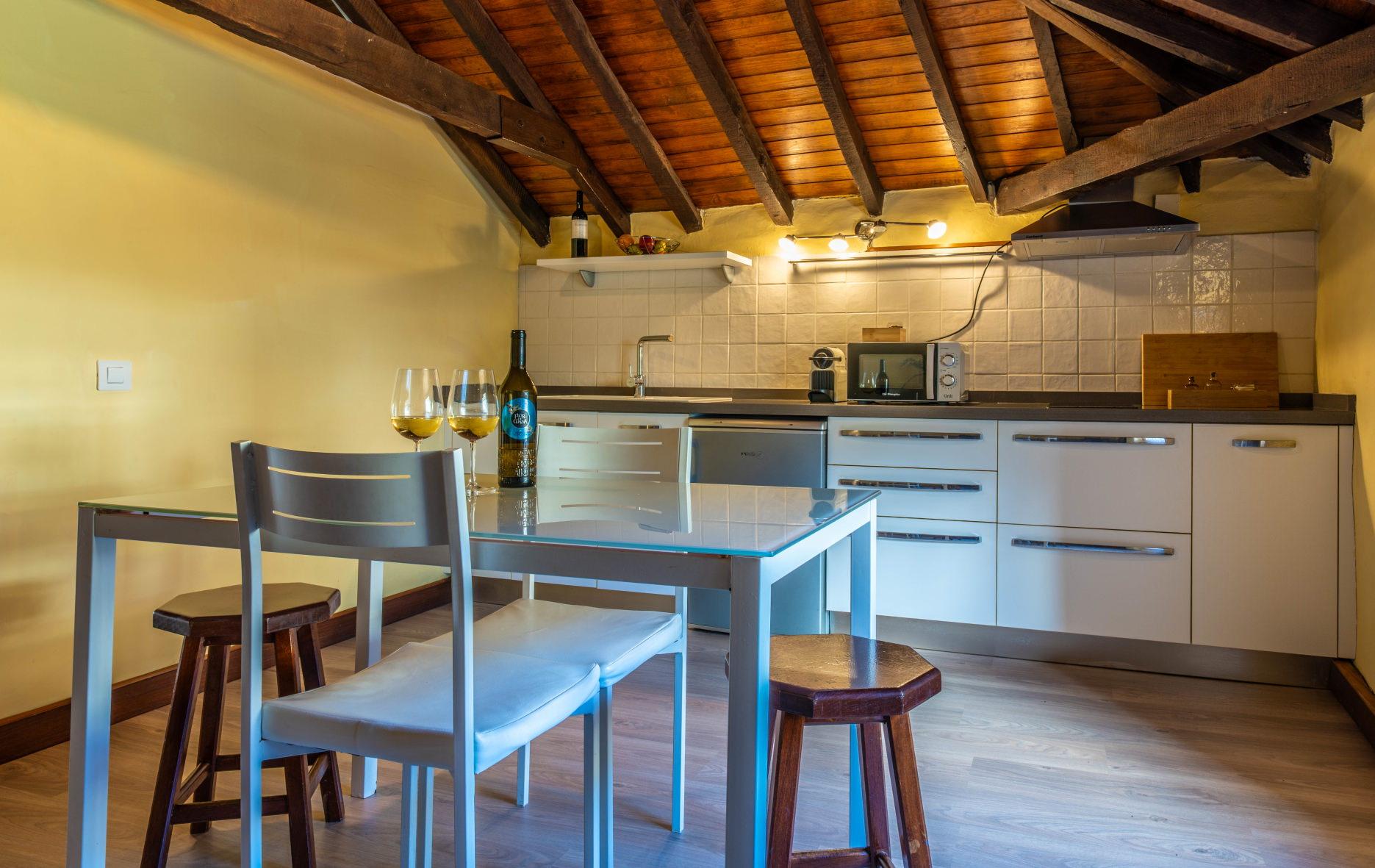 Inspirada en los viñedos que rodean Tegueste, esta estancia combina el frescor de los tonos naturales con el encanto de la madera. Desde sus ventanas se aprecian las colinas verdes y el horizonte agrícola que da vida al norte de Tenerife. Cuenta con cocina totalmente equipada, baño privado y un ambiente perfecto para desconectar entre naturaleza y confort.